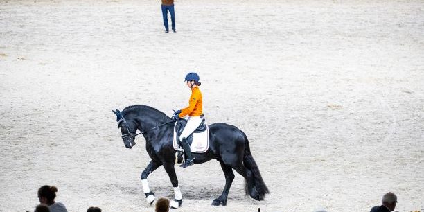 He always aims to keep his riding and teaching as simple as possible. ‘I work with a system that divides every exercise into three parts: direction, speed and posture. That is the basis. With every exercise I ride I check if the direction is correct and, for example, if the horse moves on the right tracks in lateral work. The horse is not allowed to start moving faster or slower, that is speed. Next, things can also go wrong in terms of posture: is head carriage too high or too low? When an exercise or training doesn’t go as planned the rider has to work out what exactly goes wrong. By working on that aspect you will make progress, not by endlessly repeating the same exercise.’ Working on one aspect is working on the basics. ‘You always need to be able to go back to the basics. Experience has taught me that Friesian horses find it quite difficult to keep their balance when being asked for bend through the body. They are real body builders, when you ask for bend and they lose their balance they will tighten up in all their muscles. If you don’t know how to correctly isolate the muscle tension in their body that muscle power gets in the way and they tighten in their body. That’s why I prioritise working on bend from the moment a young Friesian horse has learned to move forward with straightness. I do that by continuously asking a bit more from them. You could call it balancing exercises. Because only when a horse knows how to keep his balance, irrespective of the bend you ask from him, he can keep moving with the same direction, speed and posture. And that’s what you need to be able to carry out all the other exercises later on.’